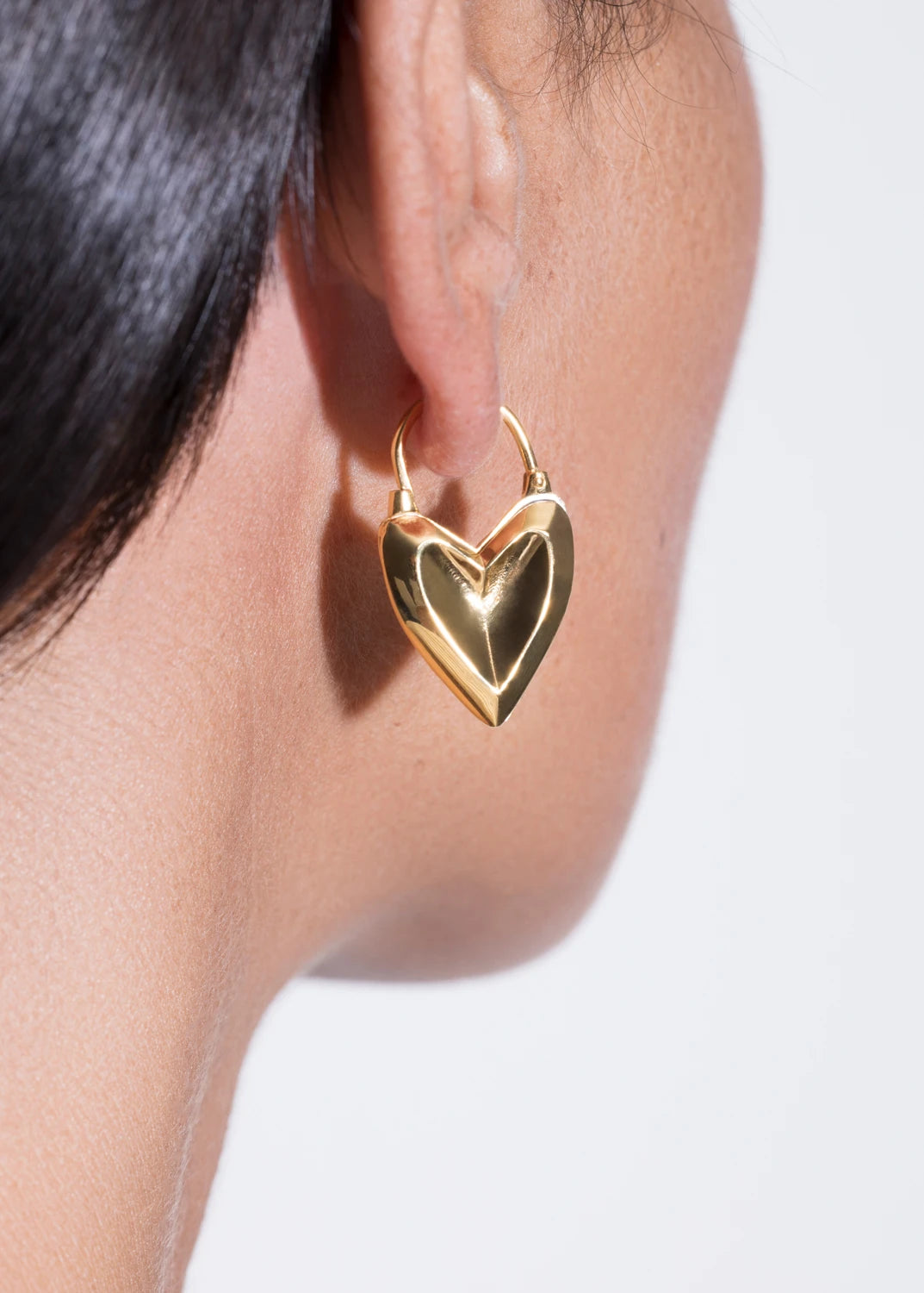 Miu Huggies — two sides of the same feeling. Crafted in Sterling Silver 925, finished with white rhodium or 24k yellow gold plating, these earrings reinterpret the classic huggie through a heart-shaped sculptural design that can be worn on both sides.